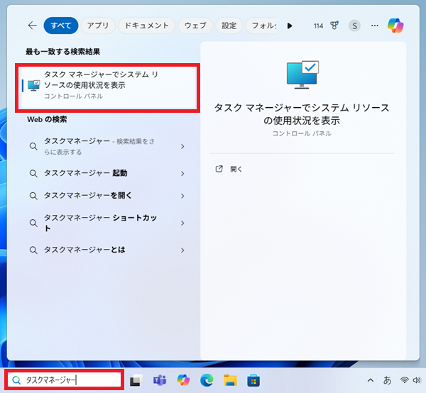 3. 検索結果に表示された「タスクマネージャー」をクリックします。